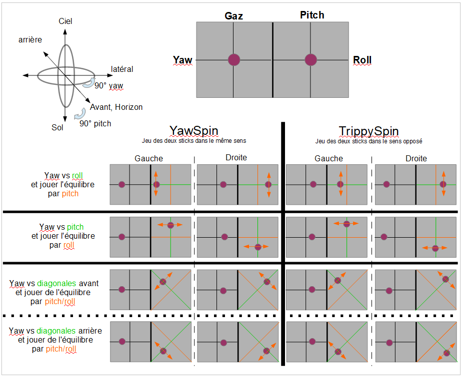✓A) En marche avant, constater que le yawspin / trippyspin se fait yaw contre roll.